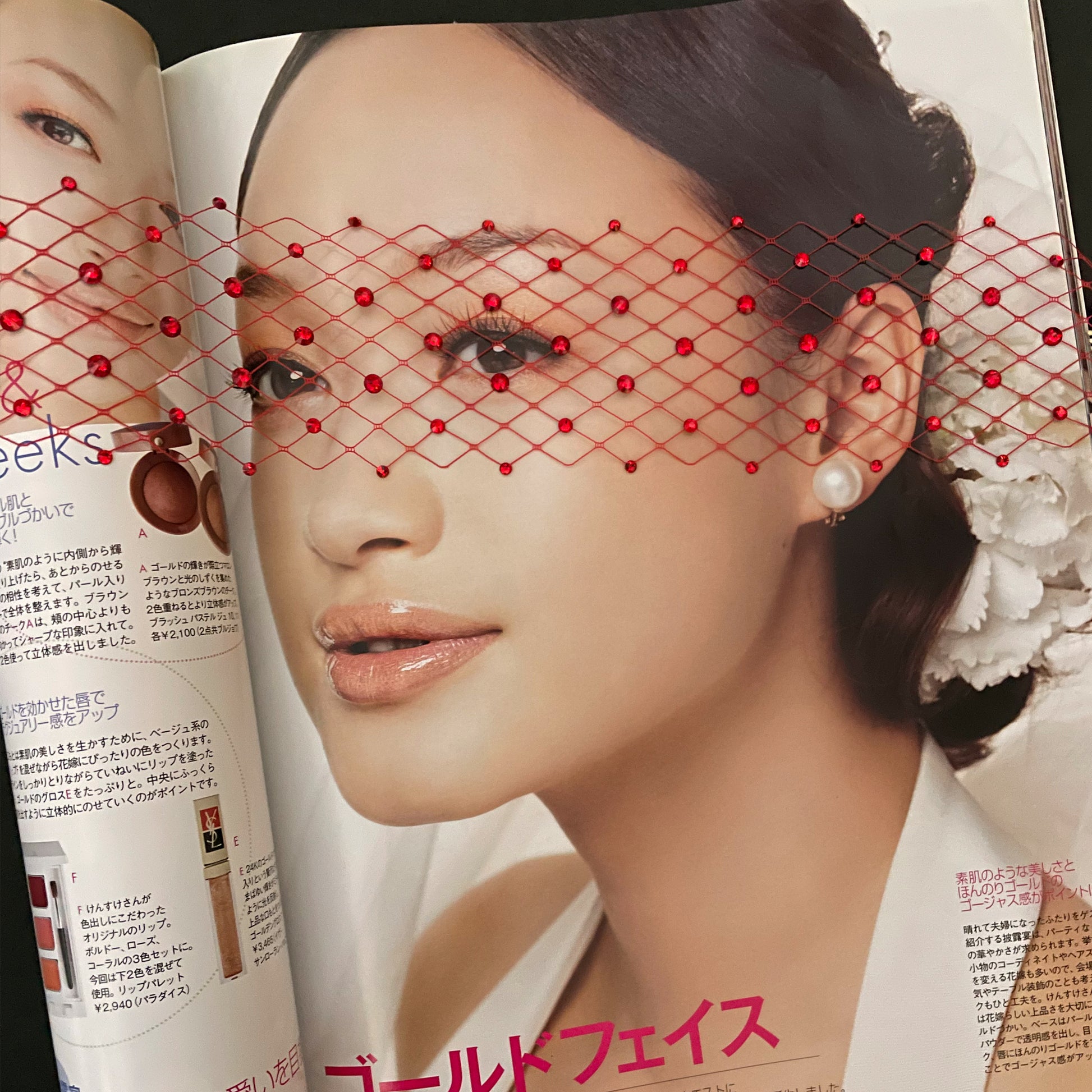 Diadema con velo de cara de cristal, tocado rojo, velo para boda, máscara para ojos, joyería para el cabello