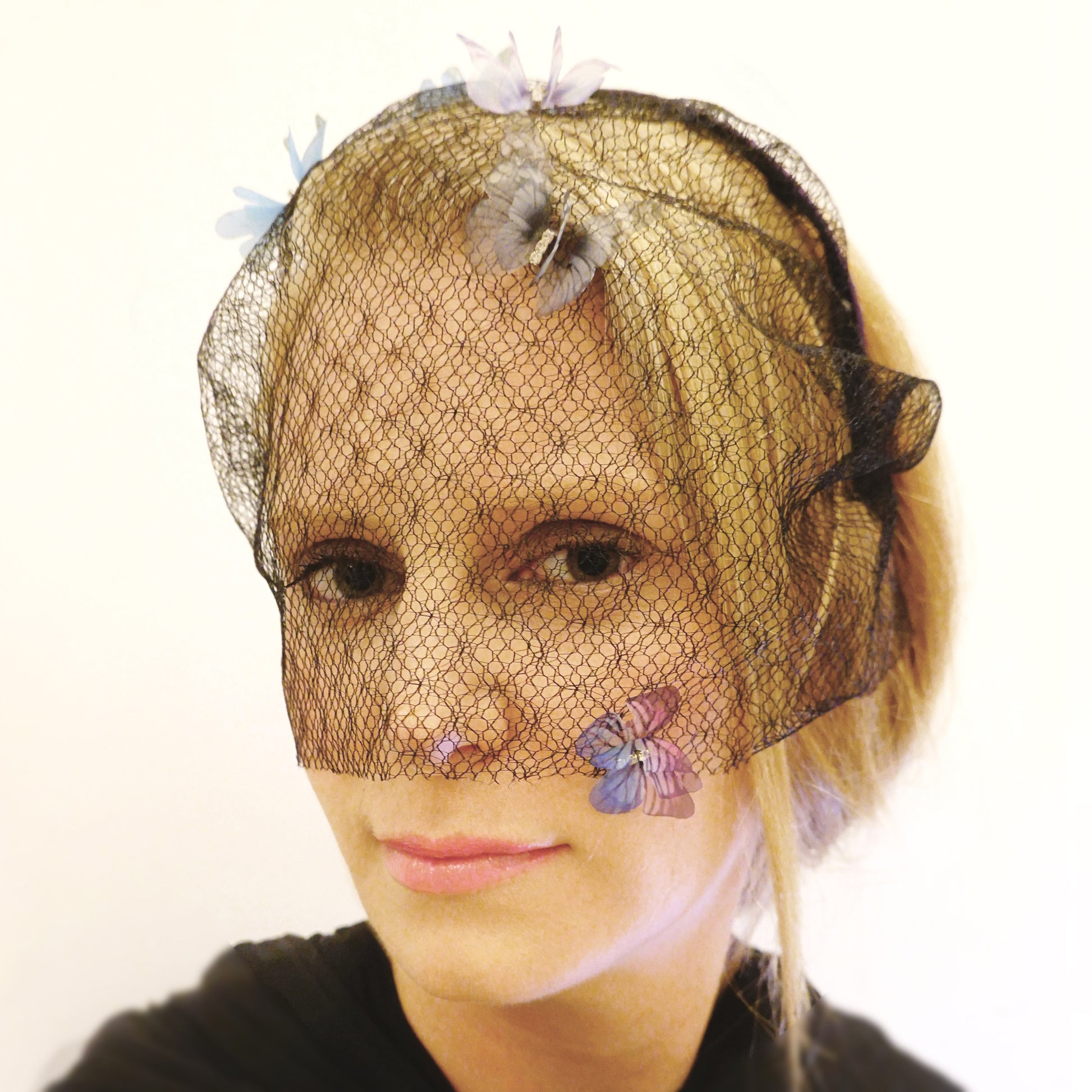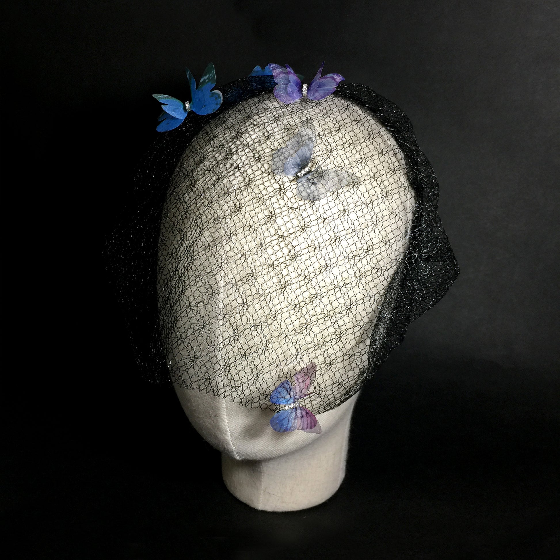 Lady butterfly veil headband gothic, Black butterfly birdcage veil, Punk wave veil