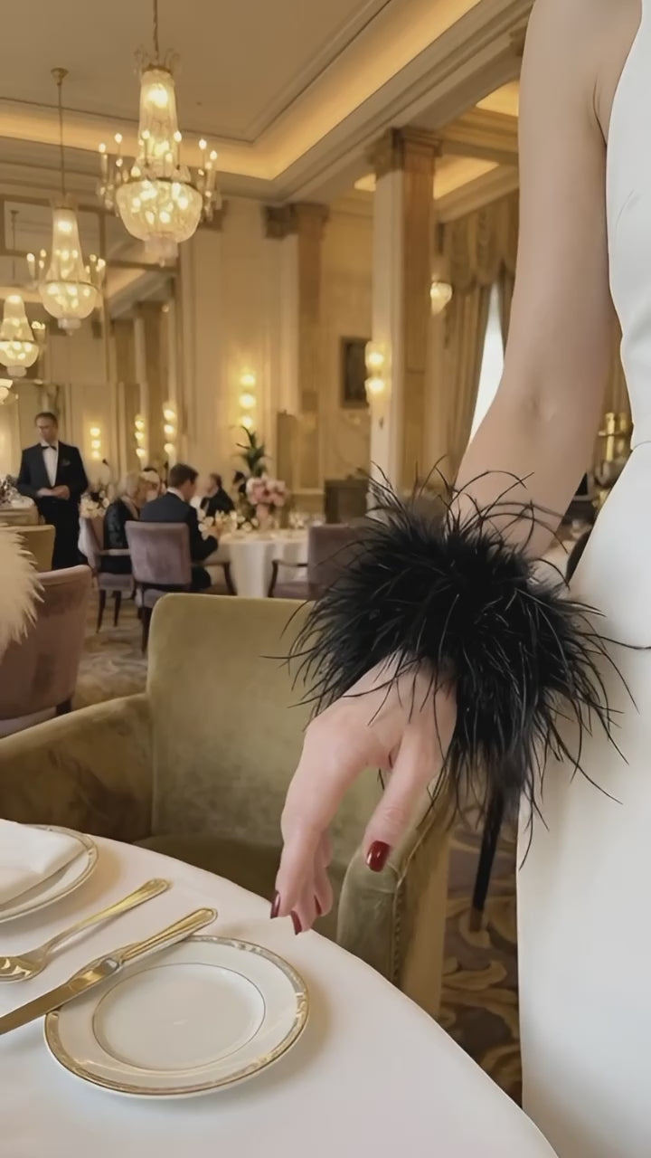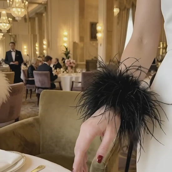 Elegant black or ivory marabou feather cuffs in different layers. Perfect to compliment your outfit for party, special event or wedding.