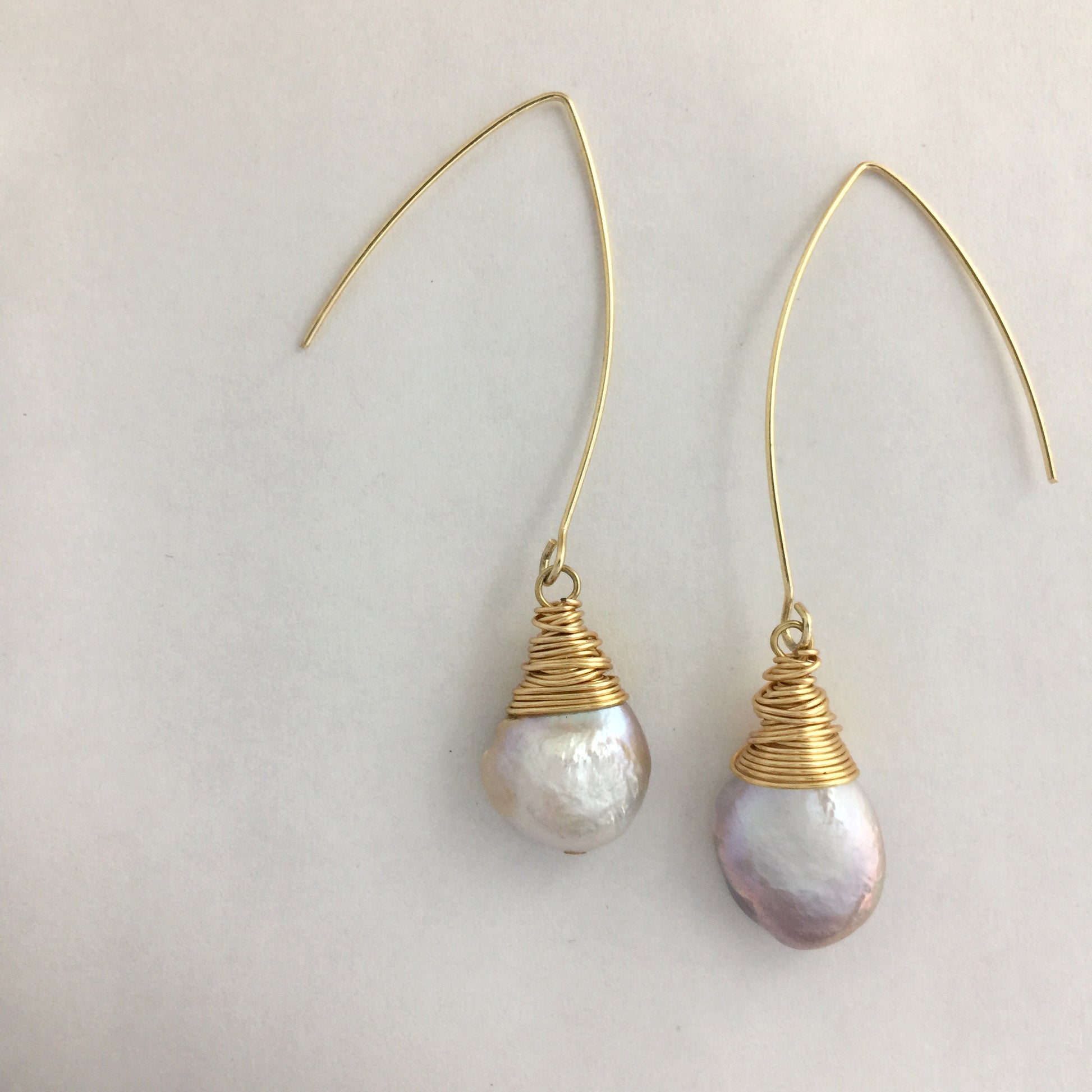 Baroque pearls are freshwater cultured pearls, irregular in shape and could have a dented or uneven surface, i.e. each piece is unique. Each pair of earrings is carefully hand-made which adds a feel of gentleness & elegance.
