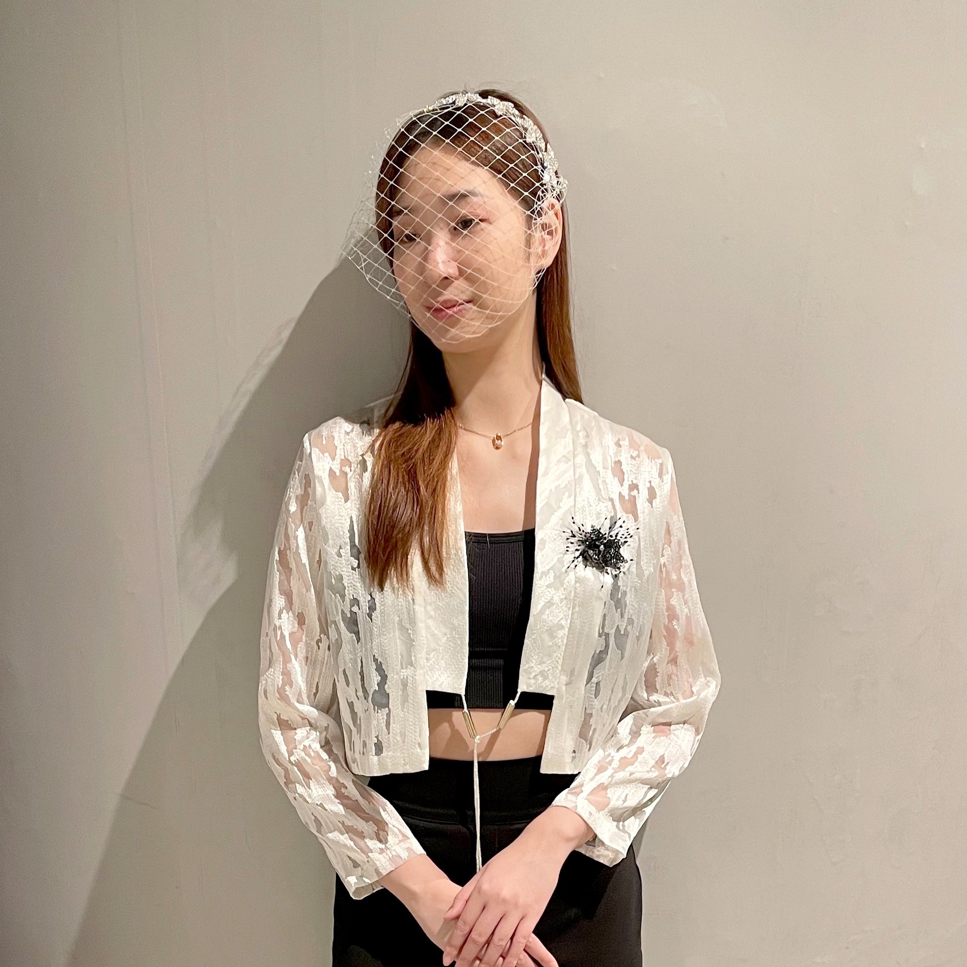 ❤ Veil is 11"/26cm deep, falls below nose.